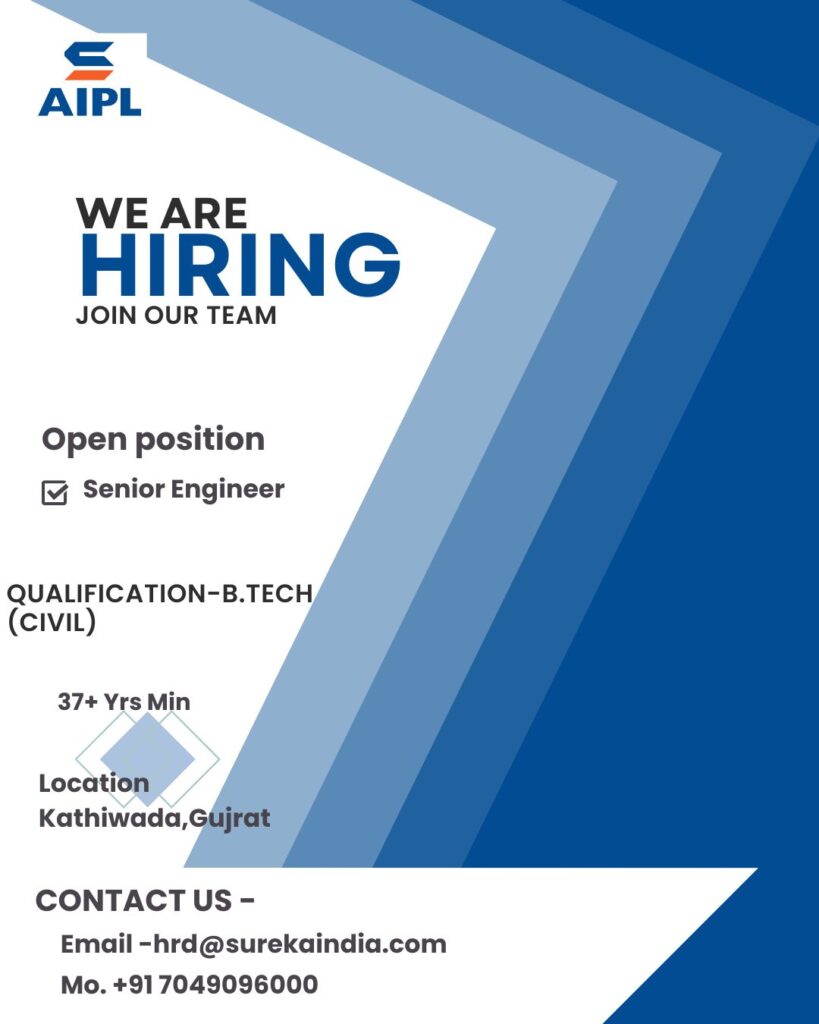 Source: CJH-HR-25Posted on: 05-01-2026 | 9:56 AM π’ Company AIPL(As per attached hiring poster) π Open Position Senior Engineer (Civil)