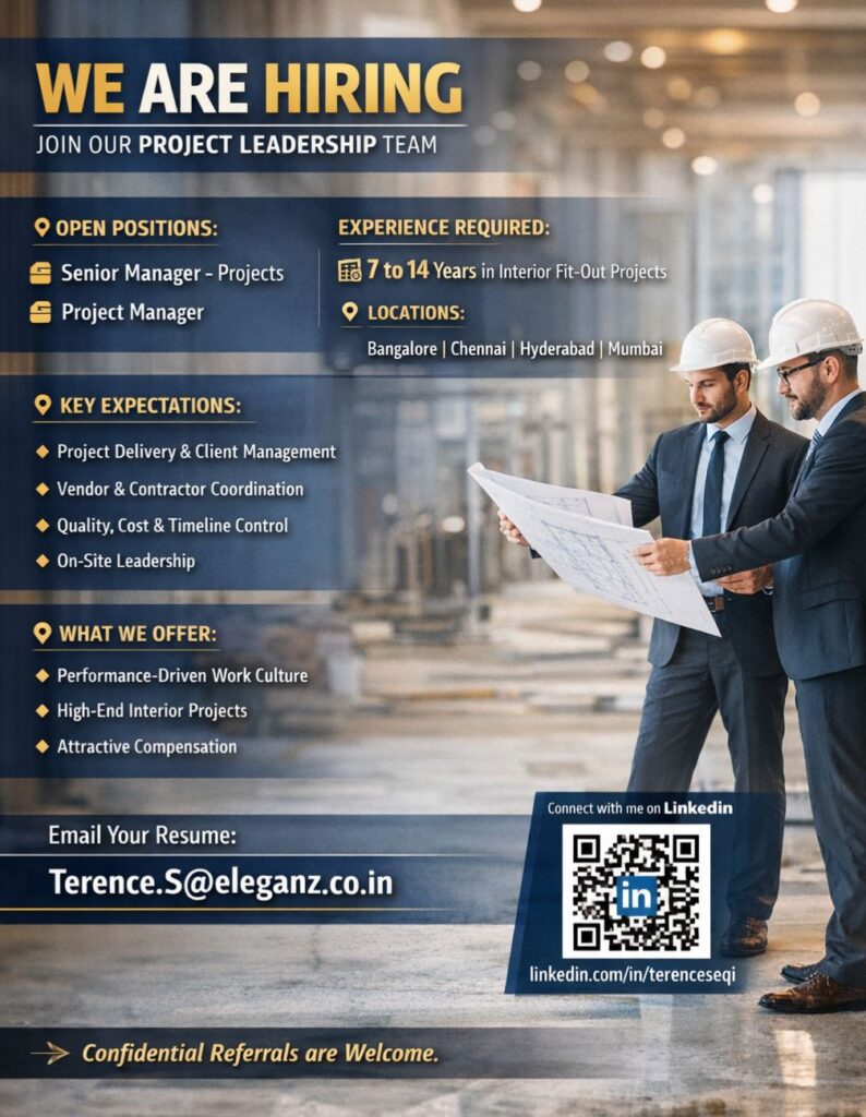 Source: CJH-HR-Verified (CJH-HR-88)Category: Project Leadership β Interiors π’ Company Eleganz Interiors Eleganz Interiors is inviting applications from experienced Project Leadership