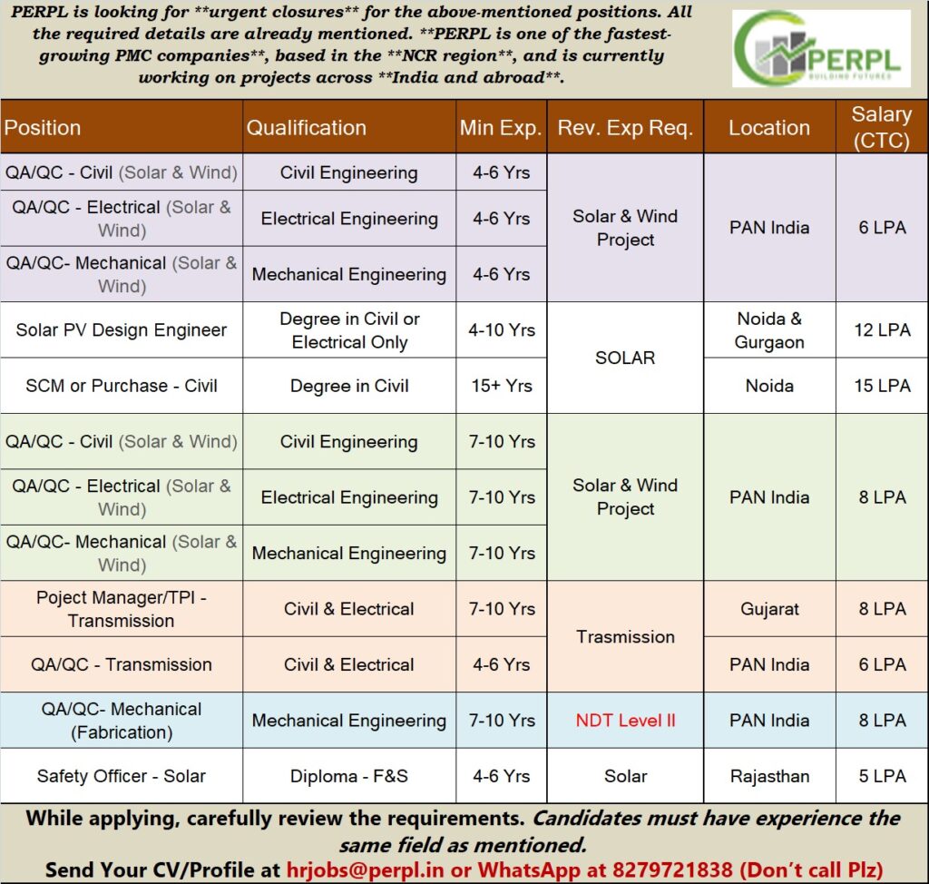 Company Name:PERPL (Project Engineering & Resources Pvt. Ltd.) Company Profile:PERPL is a fast-growing Project Management Consultancy (PMC), headquartered in the