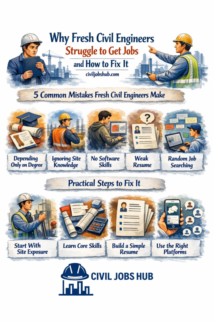 Introduction Every year, thousands of civil engineers graduate in India.But most freshers face the same frustration. No calls.No replies.No clear