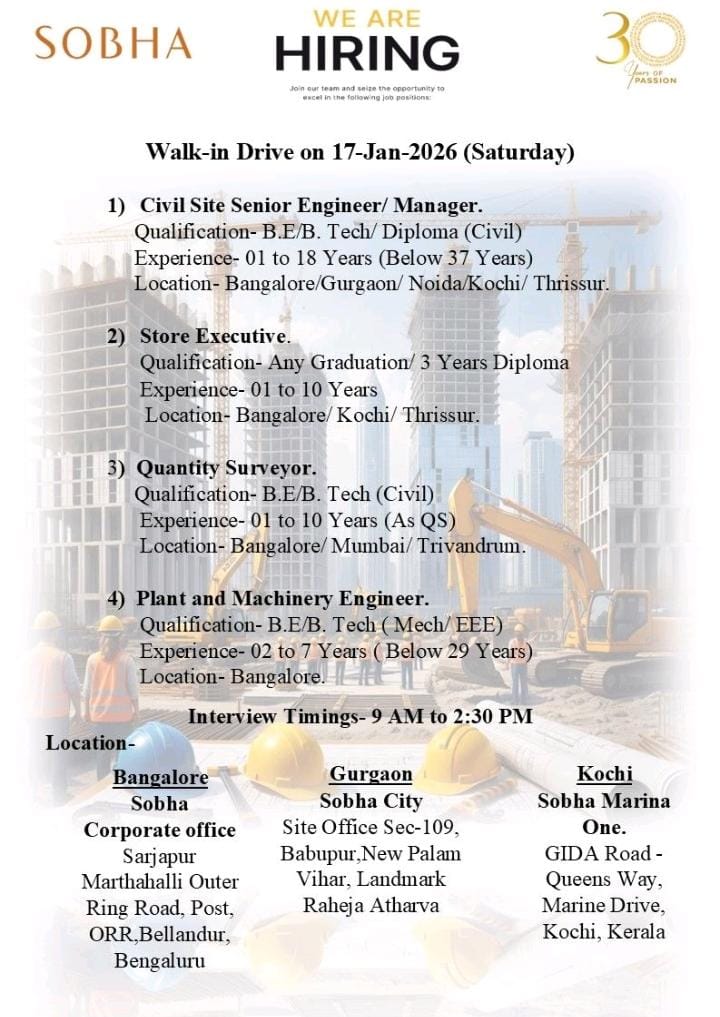 Walk-In Drive on 17 January 2026 (Saturday) π§ Open Positions & Requirements 1οΈβ£ Civil Site β Senior Engineer / Manager
