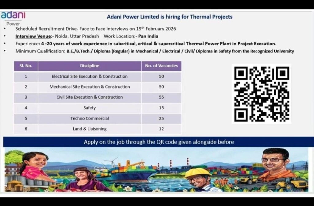 📅 Interview Date:19 February 2026 📍 Interview Venue:Noida, Uttar Pradesh 📍 Work Location:PAN India 📌 Open Positions (Thermal Power Projects)